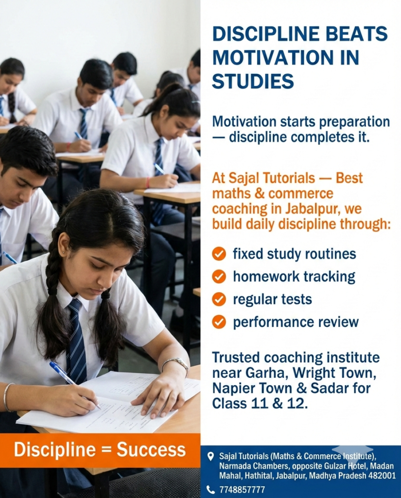 At Sajal Tutorials — Best maths & commerce coaching in Jabalpur, we build daily discipline through: