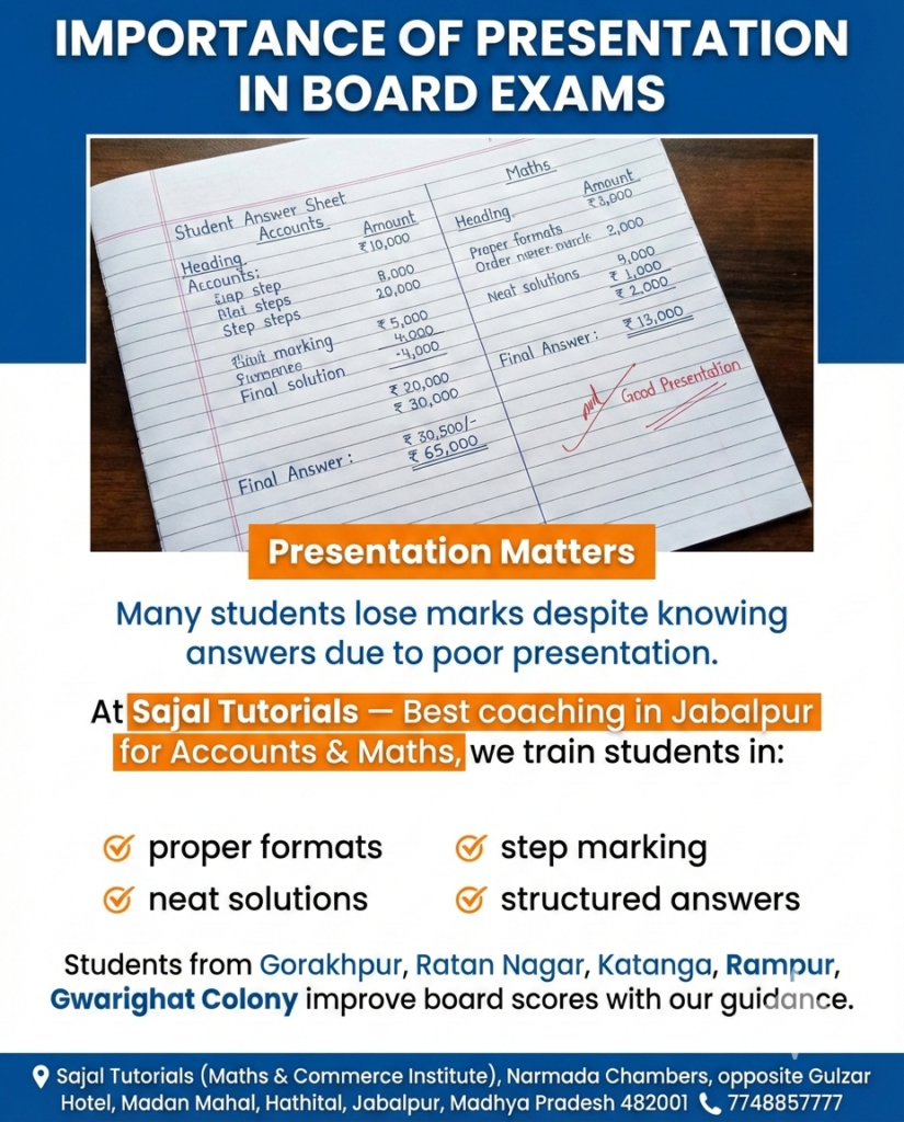 At Sajal Tutorials — Best coaching in Jabalpur for Accounts & Maths, we train students in: